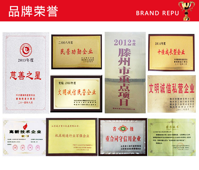 山東威力重工機(jī)床有限公司歷經(jīng)數(shù)十年年的改革與發(fā)展,威力重工取得了不計(jì)其數(shù)的榮譽(yù),包括政府組織機(jī)構(gòu)評(píng)選頒發(fā)的各類證書,媒體和市場(chǎng)研究機(jī)構(gòu)的獎(jiǎng)項(xiàng),公眾通過正式和非正式渠道對(duì)企業(yè)的贊許等等。這些榮譽(yù)是社會(huì)和公眾對(duì)山東威力重工機(jī)床有限公司的獎(jiǎng)勵(lì),是廣大消費(fèi)者對(duì)威力重工產(chǎn)品的認(rèn)可,是山東威力重工優(yōu)良口碑的見證。
